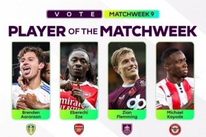 体育资讯10月28日讯 英超联赛第9轮已经完赛,英超官方也列出了本轮英超最佳球员候选8人名单: