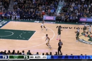 GIF-库里被提前犯规 超远三分随手扔进网窝