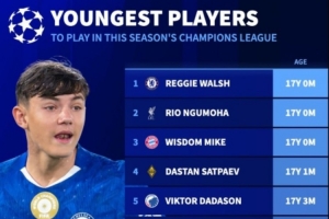 有望本赛季参加欧冠比赛最年轻球员:恩古莫哈、伦哈特-卡尔在列