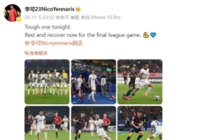 他在社媒写道:Tough one tonight.